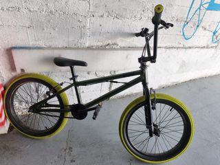 Bicicleta BMX modelo Wipe 500 del año 2024. Ha tenido muy poco uso. - Ruedas de 20 pulgadas. - Color verde oscuro. - Neumáticos de color amarillo. Algún pequeño rayazo muy poca cosa.