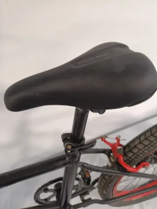 Bicicleta BMX de color negro. - Sillín con diseño ergonómico. - Rueda trasera con aro rojo. - Restaurada hace 5 años. - Original de los años 90