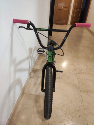 Bicicleta BMX FLYBIKES NEUTRÓN en perfecto estado. Es de color verde y tiene algunos detalles estéticos. - Cuadro de acero. - Llantas de aluminio. - Manillar de color rosa.