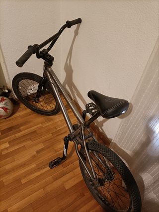 Bicicleta BMX montada a piezas, con algún roce pero sin fisuras y va perfecta Negociable -Cuadro MB -Sillin Pivotal Pirate Sandia -Potencia Banned Rasta -Buje RockBMX Rasta 9t (suena muy bien) -Cadena de medio eslabón -Bielas y Plato (25t) de Salt, Pedales Odissey -La llanta trasera de doble pared asi que es muy resistente, la delantera no lo se sinceramente pero creo que es de pared única. -Cubierta trasera Cult y delantera Salt+