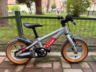 Bicicleta infantil Cube Cubie RT 120, ideal para los más pequeños. - Cuadro de aluminio ligero. - Ruedas de 12 pulgadas. - Frenos adaptados para niños. - Diseño llamativo con detalles en rojo.