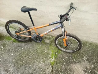 Bicicleta de montaña Rockrider ST 500 en color naranja. No tiene ni un año, comprada en abril de 2025. Usada literalmente 2 veces. Está tal cual se sacó de la tienda. No un sólo rasguño ni suciedad. Lleva extra portabidon y pata de cabra. Cuadro de aluminio, ruedas de 26", suspensión delantera, para niños de 9 a 12 años (135-150cm).
