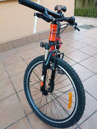 Bicicleta infantil Monty KX7 de 24 pulgadas en color naranja. Ideal para iniciarse en el ciclismo. - Cuadro de aluminio. - Frenos V-Brake. - Suspensión delantera. - Cambio Shimano de 7 velocidades. - Para 8 a 12 años NO NEGOCIABLE