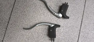 Par de manetas de freno para bicicleta de carretera. Para proyectos de restauración de bicicletas de carretera clásicas. Con bastantes marcas, aunque se pueden restaurar algo con lija y pulido. - Material: Aluminio y pasta.