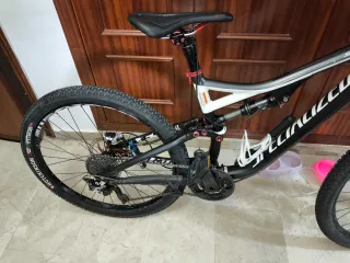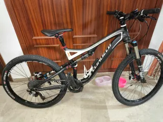 Bicicleta de montaña Specialized Stumpjumper en color negro y blanco. - Cuadro de aluminio. - Suspensión delantera y trasera. - Frenos de disco hidráulicos. - Ruedas de 26 pulgadas. -Practicamente nueva.