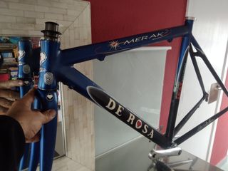 Vendo Cuadro de carretera De Rosa Merak , Aluminio con escandio, horquilla carbono -Kevlar. Sper ligero y resistente, sin golpes ni grietas, estado original, talla 52. Eje pedalier y dirección.