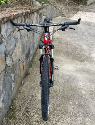 Bicicleta de montaña Specialized Stumpjumper 29 talla M - Cuadro de aluminio rojo y blanco. - Frenos Avid elixyr. - Cambio XT - Transmision 2x10 - Pedales hibridos - Horquilla RockShox reba 90 - Llantas de 29 pulgadas. - Con marcas de uso aunque lista para rodar