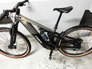 Bicicleta eléctrica Trek Powerfly 4 en color gris y negro. Diseñada para ofrecer una experiencia de ciclismo potente y cómoda. - Cuadro de aluminio talla M - Motor Bosch. - Ruedas de 29 pulgadas. - Suspensión delantera y trasera -comprada en Mayo del 2025 - solo tiene 210km. -no se envía solo venta en persona -no se cambia por nada - la talla es la M, yo mido 1,70.
