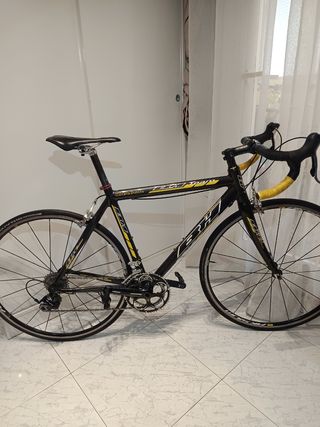 Bicicleta de carretera BH con cuadro de carbono. - Cuadro de carbono - estén de carbono - manillar de carbono - tija de carbono - Modelo Team - Color negro y amarillo. - desviador trasero 105 - desviador delantero Ultegra - manetas de cambio Ultegra - frenos Ultegra - plato FSA - ruedas Mavic Aksirium