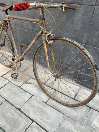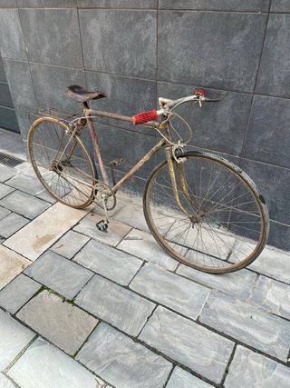 Bicicleta de carretera antigua con un diseño clásico. - Cuadro metálico. - Sin sillin! - Ruedas de radios. - Puños rojos. Ideal para restaurar, necesita algo de cariño !!! Se escuchan ofertas!!