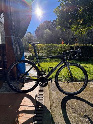 Espectacular bicicleta BH G7 Pro de carbono, talla M en excelentes condiciones tal cual como se ve en las fotos. Ideal para rutas exigentes. - Cuadro de carbono ligero y resistente. - Componentes de alta gama: - Cambio y manetas Durace - Frenos shimano 105 - Bielas ultegra - Ruedas progress phantom - Sillín san Marco Componentes de alta gama lo que hace que no llegue a pesar los 7kg - Diseño elegante en negro y amarillo neón. - Lista para rodar. Muy bien cuidada.