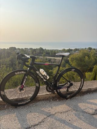 Bicicleta de carretera BH Ultralight pintura en carbono visto tope de gama. -Grupo completo shimano durace. -cadena y cassette durace -ruedas compradas a la carta perfil 45 con factura y buje dt swiss 240. - peso 7kg - neumaticos vitoria corsa 30mm