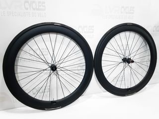 Ruedas de carbono BMC CRD501 fabricadas por DT Swiss. Con un perfil de 50mm, son ideales para ciclismo de carretera. - Material: Carbono - Perfil: 50mm - Fabricante: DT Swiss - Núcleo Shimano Perfil de llanta: 50 mm en forma de U fabricado y ensamblado por DT Swiss Fondo de llanta: Tubeless ready Radios planos: 28 por rueda Tamaño de la rueda: 700c Buje delantero: acero inoxidable DT Swiss - eje 12x100 Bujes traseros: DT Swiss acero inoxidable - 12x142 Montaje de disco: Centerlock Se vende sin los discos.