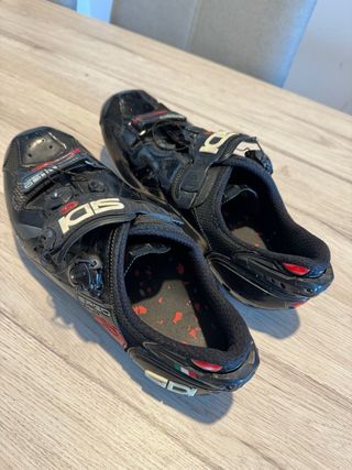 Zapatillas fabricadas en microfibre techpro y mesh. Suela de carbono composite Twelve. Cierre micrométrico Tecno 3 push system y banda velcro. Talón remplazable. Son de horma ancha. Las vendo porque ya no monto en bici de carretera.