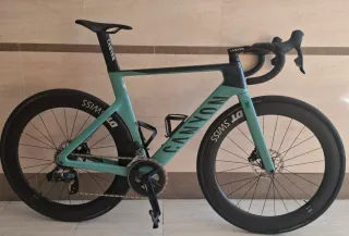Bicicleta de carretera Canyon Aeroad SLX 7 del año 2023. Talla M. Perfecto estado. Factura original. Mantenimientos semestrales. Montada en Sram Axs Rival. Potenciómetro integrado. Regalo pedales, portabidones originales Canyon, portacomputador y luz delantera original Canyon. La entrego montada con los neumáticos originales Continental Gran Prix 500 25mm a estrenar. - Cuadro de carbono. - Color verde y negro. - Ruedas DT Swiss 62 mm. - Frenos de disco.