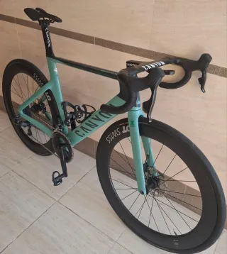 Bicicleta de carretera Massi Team en color verde azulado año 2020 - Cuadro de carbono talla 56 - Frenos de disco. - Ruedas de perfil 35 campagnolo sirocco -Montaje completo en shimano 105 11v -Pedales shimano -Portabidones de carbono Está muy cuidada, la vendo por falta de tiempo. Si te gusta y la ves en directo te la quedas, es preciosa. Pregunta sin compromiso.