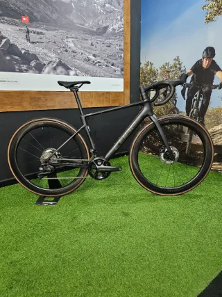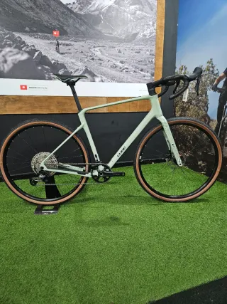 Bicicleta de gravel Riverside GCR en color verde militar. Diseñada para todo tipo de terrenos, combina rendimiento y comodidad. -Muy poco uso está en perfecto estado. - Cuadro de carbono. - Transmisión Sram rival electrónico. - Talla S