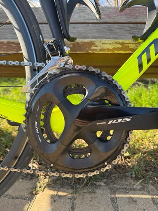 Comprada Febrero 2019, y utilizada sólo durante ese año. No ha vuelto a rodar ni un kilómetro. Cuadro aluminio. Horquilla y tirantas de carbono. Talla M/L. Platos 48/36 y casete 27/16 (tiene desarrollo categoria infantil escuelas). Shimano 105 de 11 velocidades. Sin caidas, sin apenas roces ni arañazos. Pedales Look Keo de regalo.