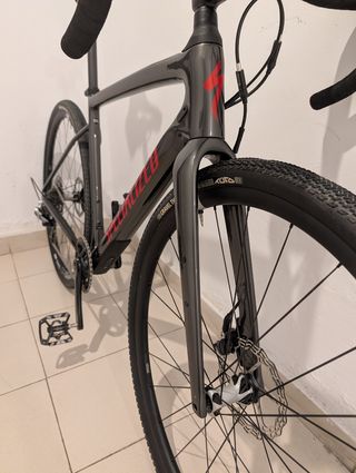 SPECIALIZED DIVERGE CARBON (talla 56) Estado como nuevo, impoluto, sin una mínima marca o roce, a estrenar. -Cuadro carbono talla 56 -Grupo Sram Rival 1x11 completo (mejora con respecto a la bici de serie) -Tijs Specialized carbono -Ruedad DT SWISS GR1600 con neumáticos TUFO 40mm (mejora con respecto a la bici de serie) PRECIO NO NEGOCIABLE