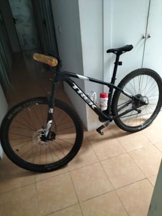 Bicicleta Trek de montaña y carretera con un diseño moderno. Tiene 500km y 7 años desde que se compró. Usada muy pocas veces solo por carretera. En cuanto a la talla ha sido utilizada por hombre de 1.70cm y podría serlo para 1.80cm. Talla M - Ruedas de 29 pulgadas. - Frenos de disco. - Horquilla de suspensión delantera. - Cuenta km -Fibra de carbono