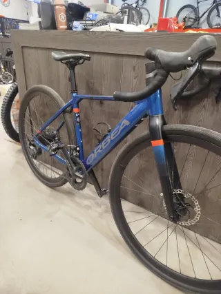 Bicicleta eléctrica carretera / gravel Orbea Gain en talla XS. - Color azul con detalles naranjas. - Cuadro de aluminio, horquilla carbono - batería 250wh - motor mahle rueda trasera - grupo completo Shimano 105 mecánico 2x11 - Frenos de disco hidráulicos - luces integradas -cuentakms vinculado a la bici - 10000 kms por carretera Impecable