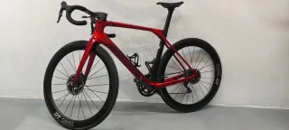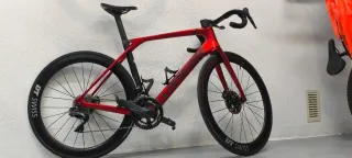 Bicicleta de carretera Trek Madone en color rojo. - Cuadro de carbono. - Ruedas Visión 42 con frenada aluminio - Manillar plano de carbono - Cambio electrónico Welltop 3/14 velocudades - Talla 54