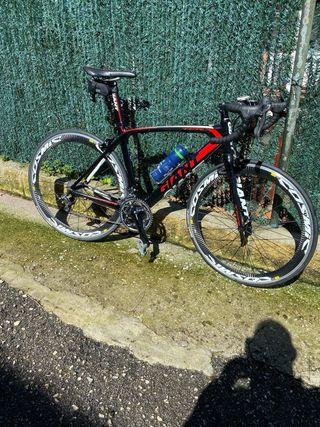 Bicicleta de carretera Giant en llamativos colores negro y rojo. Perfecta para ciclistas que buscan rendimiento y estilo. Se vende por falta de uso. Más información, preguntar. Precio negociable. - Cuadro de carbono. - Ruedas Mavic Cosmic. - Portabidón incluido.