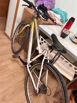 Bicicleta mixta Decathlon Riverside 500, comprada en los años 2000. Talla M. Con marcas por el paso del tiempo. Usada muuuuuy poco por mi mujer. Todos los elementos son los originales de la compra. Guardada desde hace años en trastero. Me muevo por muchas zonas de Madrid, consúltame 😉