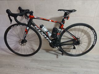 Bicicleta de carretera Kuota Korsa fabricada en carbono. Ideal para iniciación. Se incluyen pedales Look Keo -Cuadro y horquilla de carbono -Ruedas Progress Phantom de perfil. Radios planos. -Cubierta trasera nueva a estrenar. -Cassete de 11 velocidades 11/32 nuevo a estrenar -Plato 50-34. -Cambio y frenos de zapata Shimano 105 -Sillín San Marco. -Incluyo Cassete original 11/28 y patilla del cambio