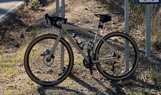 Bicicleta Megamo Gravel en color beige, lista para tus aventuras. - Cuadro de aluminio. - Frenos de disco. - Ruedas de gravel.