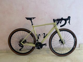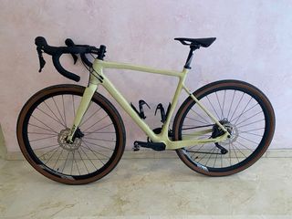 Bicicleta de gravel Megamo en color beige con detalles en negro Talla M. - Cuadro de carbono - Grupo Grx de Shimano - Cubiertas dd 45 - Pesa 9,5 kg aprox - Perfecto estado Se aceptan ofertas, pero no cambios por otra bicicleta. El envió seria en persona