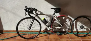 Vendo esta Orbea Aqua año 2014 talla 57 (1,75-1,80cm aprox) cuadro de aluminio serie 7500 y horquilla de carbono, muy ligera, por debajo de 9kg. Tija y potencia Orbea Components, cinta manillar recien puesta, sillín piel Selle Italia Trans AM, frenos y transmisión Shimano 2x9v (12-28), llantas de perfil la trasera Shimano WH-R600 con cubierta Continental 5000TL 700x25c, pedales automáticos Look Keo easy, portabidón Elite con bidón a juego. Se entrega lista y puesta a punto, ideal para iniciación o entrenamiento, rueda muy bien, mejor ver y probar, no negociable.