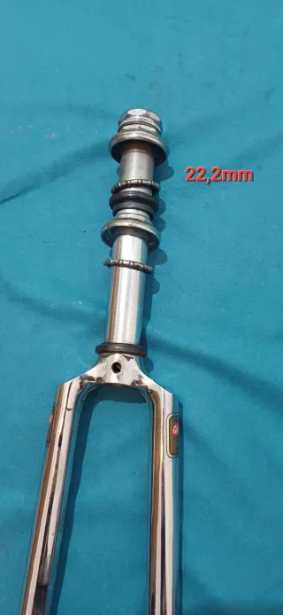 Horquilla de bicicleta de carretera con acabado cromado brillante. Ideal para bicicletas clásicas viene de una orbea Para ruedas de 700 28 pulgadas Dirección completa incluida El único defecto son las Pegatinas algo dañadas Ref 311225