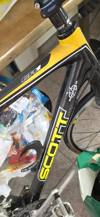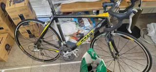 Bicicleta de carretera Scott Speedsters en talla XL (58). - Cuadro de aluminio. - Componentes Shimano. - Ruedas de 700c. - Color negro y amarillo. Regalo camara de recambio, pedales para las calas