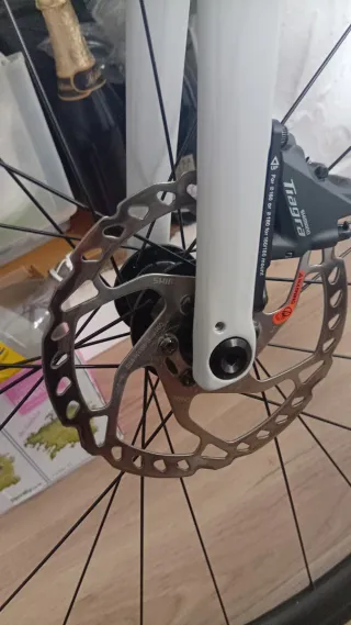 Bicicleta de carretera Specialized Tarmac de carbono. - Cuadro de carbono. - Manillar de carbono. - Tija carbono con retraso. - Frenos de disco. - Ruedas DT Swiss G18000 con neumáticos Specialized S-works. - Piña Shimano Ultegra - Bielas Shimano Ultegra. - Platos Shimano Durace. - Pedales Shimano Durace - Bien cuidada y poco uso. - Talla 52 Último precio, vendo por cambio de modalidad, la bici está perfecta.