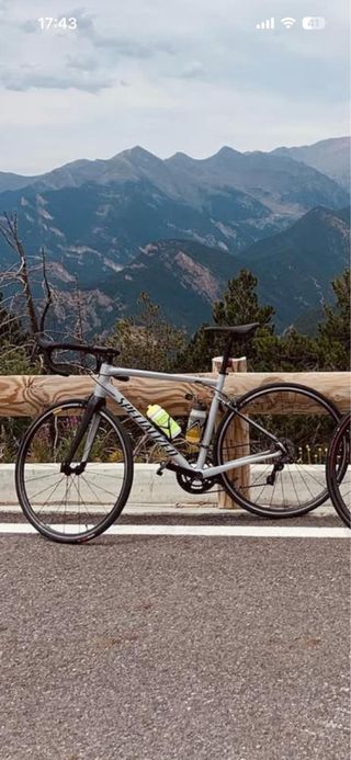 Bicicleta de carretera Specialized de color gris faltaria regular cambio trasero 2023 especificaciones en las últimas fotos talla 56 mido 1'80 los dos neumáticos nuevos y más finos
