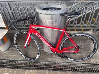 Bicicleta de carretera Specialized Tarmac SL8 Pro. TALLA 49 - Cuadro y horquilla de carbono. - Frenos de disco. - Ruedas DT Swiss ARC 1100 de 38 de perfil. - neumáticos de 25 mm - vredestein fortezza senso superiode - Todo el grupo de 12v dura ace 9270 con potenciómetro dual. - solo cambie los vinilos i le puse los de la S - WORKS. ES CUADRO ORIGINAL SL8 PRO