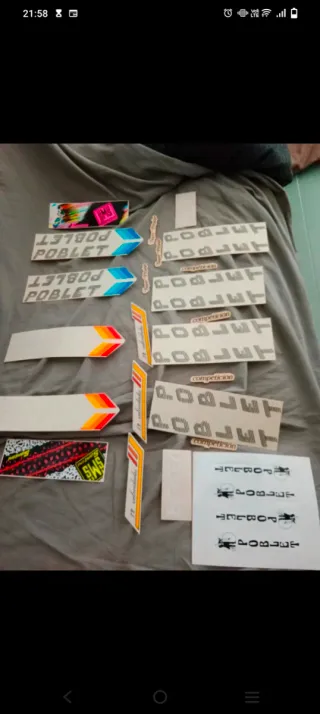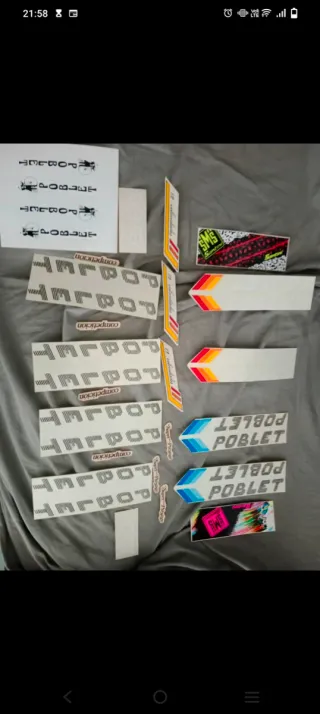 Lote de pegatinas originales de la marca Poblet para bicicletas.Valido para carretera y montaña (specialized kona Cannondale trek Orbea flite vintage Klein Sunn Yeti Campagnolo Shimano Xt xtr ,dura ace, ciclismo eroica, vintage etc) - Variedad de diseños y tamaños. - Incluye pegatinas de marca Poblet del Excelente Ciclista.