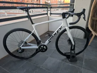vendo bicicleta carretera de carbono marca ridley noah talla S, cambio SRAM Rival AXS , 12v, bielas 172,5 , 48-35, casette 10-36, con manillar aero todo integrado 400mm-90mm, ruedas carbono forza levanto 380mm, acople gps integrado manillar, sillin speciallized power comp 143mm y pedales look keo. bicicleta con poco uso y muy bien cuidada, como nueva y con garantia hasta 2028. posibilidad con potenciometro Sram en Biela izquierda modelo Rival AXS DUB por 150€ mas.