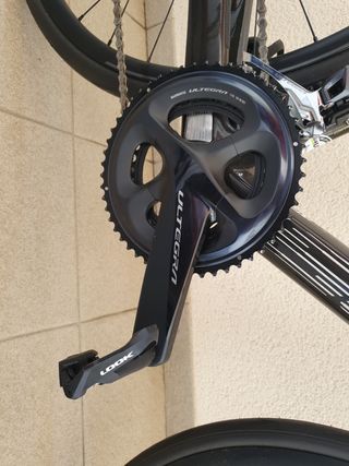 Bicicleta eléctrica de carretera | Cuadro de Carbono | Talla 58 | Cambio: Shimano Dura-Ace Electrónico | 12 velocidades | Cassette: 11-30-T | Mandos de cambio: Shimano Dura-Ace Electrónico | Desviador: Shimano Dura-Ace Electrónico| Bielas: Shimano Dura-Ace | Plato: 50-34-T | Potenciómetro: No | Frenos: Shimano Dura-Ace | Ruedas: OC | Potencia: Aluminio | Manillar: Carbono | Tija: Carbono | Motor: Mahle X20 | Batería: 352Wh | 52 Kilómetros