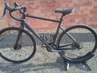 bicicleta de carretera de aluminio válida también para andar por pistas, esta montada en shimano claris de 8 velocidades, frenos de discos mecánicos, lleva unas cubiertas de 32 mm. la compré y la he utilizado para ir de casa al trabajo, está practicamente nueva. se entrega sin pedales.