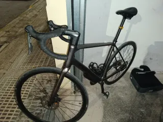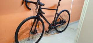 Vendo bicicleta Triban RC120 en muy buen estado, sin golpes o caídas. De aluminio con horquilla de carbono. Frenos de disco mecánicos. De 2x8 velocidades. Talla S, para personas de 1,60 a 1,70 de altura. Poquísimo uso, las cubiertas todavía conservan las rebabas del molde. Se puede hacer gravel, le entran cubiertas de hasta 38 mm de ancho. Es una bici sencilla pero muy resistente y fiable, perfecta para iniciación. Precio no negociable. No se responden regateos u ofertas.