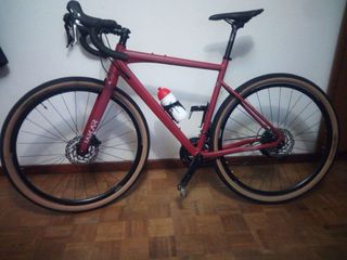 Vendo la bici de mi compañera. En bastante buen estado, ya que con mas de 60 años que tenemos, no estamos para muchas guerras. 🙂 Solamente hay que lavarla un poquito y como nueva. Bicicleta de gravel Megamo Jakar 30 en color burdeos. - Talla S (mide 1’68) - Cuadro de aluminio. - Horquilla de carbono. - Transmisión Shimano GRX. - Frenos de disco hidráulicos. - Ruedas de 700c con neumáticos anchos.