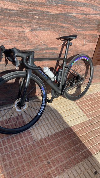 Bicicleta de carretera Scott Addict RC20 de carbono mejorada. - Ruedas Newmen perfil 35 delante y 40 detrás. Radios de carbono. Montadas en Diciembre de 2025. - Manillar syncros Creston IC SL integrado. - Grupo Shimano Ultegra di2 de 12 velocidades. 52/36 y 11/34 - Talla XS (1,60 a 1,72) - La bici pesa 6,90 kgs.