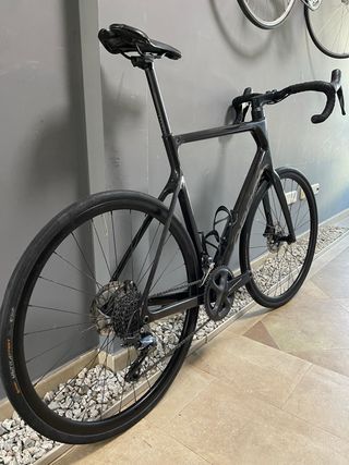 Kilómetro 0. Talla M. Cuadro de carbono HMX FOIL Disc. Horquilla FOIL Disc HMX. Transmisión Shimano 105 Di2 de 24 velocidades. Juego de ruedas Syncros Capital 1.0 60. Cubiertas Schwalbe PRO ONE Aero TL. Componentes de carbono/aleación Syncros. Se vende porque la bicicleta es una talla pequeña para mi altura-posición, por lo que no he podido darle uso.