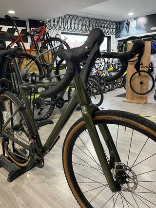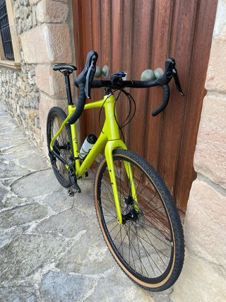 Bicicleta gravel en perfectas condiciones. Frenos de disco, ruedas en un 80 %. Cinta de manillar recien cambiada. El cuadro tiene garantia de por vida. Lleva soporte para ciclocomputador garmin. Talla L. Sillin perfecto para tiradas largas.