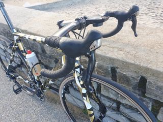 Bicicleta de carretera Pinarello. - Cuadro y horquilla de carbono. - Ruedas Mavic Ksyrium. - Cubiertas Michelin Pro4. - Manillar y potencia integrados. - replica - componentes originales - costo mas de 1.000e - Talla M-l