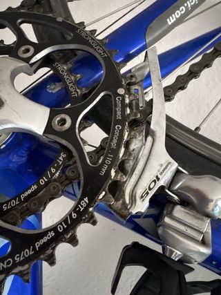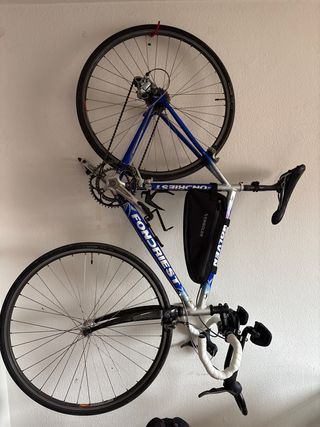 Bicicleta de carretera Fondriest con cuadro azul y blanco. Pesa 8kg La vendo porque voy a comprar una superior. Es muy rápida, va como un tiro. Última revisión completa en octubre, además el mantenimiento lo llevo siempre al día. Se puede ver y probar - Cuadro de aluminio y carbono. - Talla L - Shimano 105 - Ruedas de 700c.x25 - Manillar de carretera con acoples. - Sillín Selle Italia - Tija, potencia, horquilla y alguna cosa más de carbono.