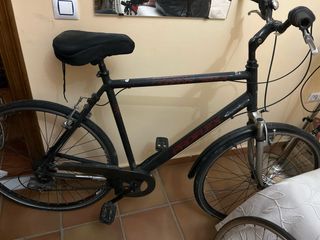 Bicicleta de carretera color negro/rojo en buen estado de conservación: - Cuadro de aluminio talla L - Pedales básicos (no los de la foto) - doble porta botella - frenos Shimano modelo tiagra con tapas de freno nuevas - Manillar de aluminio con cinta de agarre nueva. -pastillas de freno aun con mucha vida útil - plato, vielas, desviador y cambio shimano modelo tiagra. -cassete de 10 piñones - llantas WST road 28 de aluminio - cubiertas Vittoria randonneur 28-622 de 700x280 - Asiento ST modelo SETA con algunas marcas de uso - tija y potencia de aluminio Se puede ver sin compromiso. Precio algo negociable. Perfecta para iniciarse.