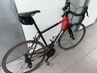 Bicicleta de carretera Btwin Triban 520 en color rojo. - Cuadro de aluminio 6061. - Pedales Crank Brothers - Transmisión Shimano Sora 3x9 - Incluido cuenta km, no bolsa de herramientas - Talla M